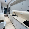 Apartamentul beneficiază de finisaje premium, realizate cu materiale de cea mai bună calitate. Toată mobila este făcută la comandă, concepută pentru a valorifica perfect spațiul și pentru a oferi un design modern, elegant și funcțional.